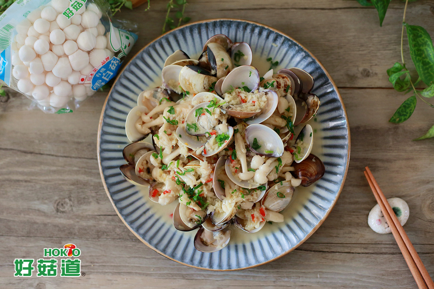 秋潤海味料理:蒜炒白酒蛤蜊雪白菇