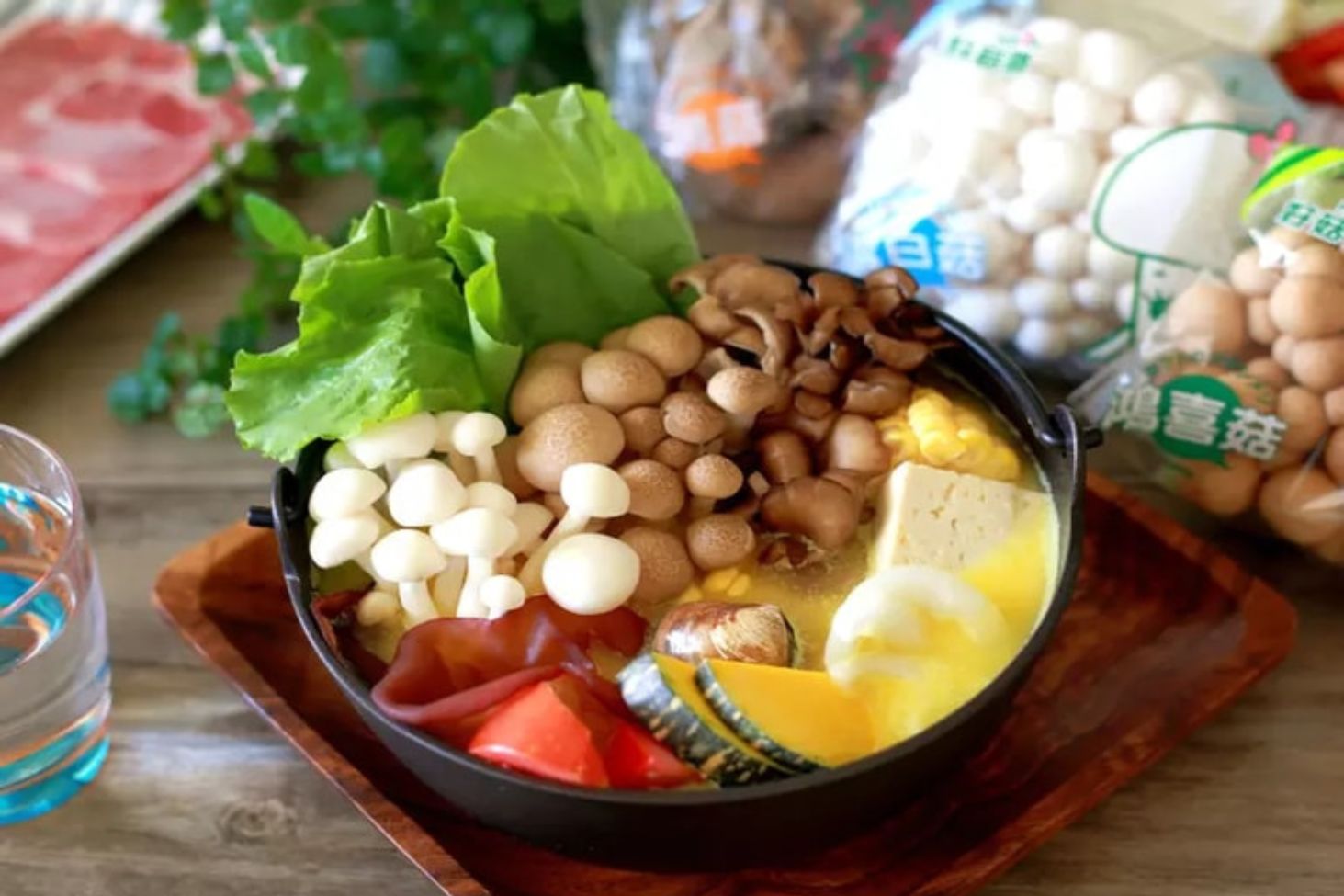 另一種當季食材則為南瓜,過去俗話曾說「秋天到南瓜俏」吃南瓜養生又降躁,加上富有豐富的澱粉、維生素、礦物質及膳食纖維,既能當蔬菜,也可以當作主食,在貯藏時間也比多數的蔬菜來得更久,很適合在家人齊聚的時刻,來一碗暖暖的奶香菇菇南瓜鍋。