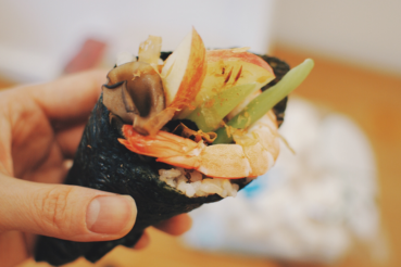 孩子總是很難抗拒海苔包飯的魅力!這道食譜,利用像蝴蝶般飛舞的好菇道舞菇吸引孩子的目光,搭配孩子喜歡的蘋果、四季豆和蝦仁,佐以少許柴魚片增添風味,不需使用任何醬料,滋味便能清爽怡人,海苔手捲果然適合夏天呢!從準備食材開始,帶著孩子一起參與,讓孩子在挑選配料、組合手捲的過程中,認識真食物,在玩料理的同時,也吃進滿滿的營養與夏日回憶。