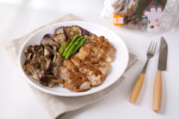 減醣原則:減少碳水化合物攝取,多吃蛋白質、脂肪、維他命等營養素。 以脂肪較低的雞肉搭配維生素及礦物質含量高的茄子、蘆筍和舞菇,尤其是舞菇更富含多醣體、膳食纖維及膠原蛋白,能提供人體更多的營養素。 紅味噌含有優質蛋白質及卵磷脂等營養素,再將糖以巴薩米克醋替代,增添整道菜的風味~~