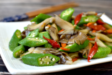菇富含多醣體、維生素、膳食纖維、礦物質等多種營養素與秋葵一同拌炒爽口又美味唷!