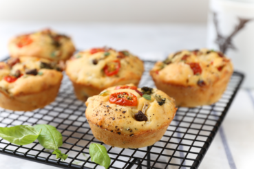 這道義式番茄菇菇馬芬可以把平時小朋友不愛吃的蔬菜都放進去變好吃,吃起來口感介於麵包跟蛋糕之間當做早餐或午茶的健康輕食都很適合。