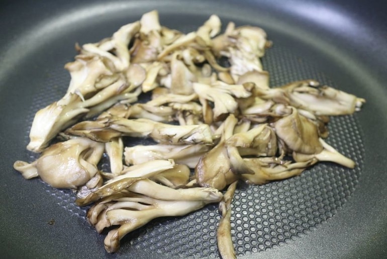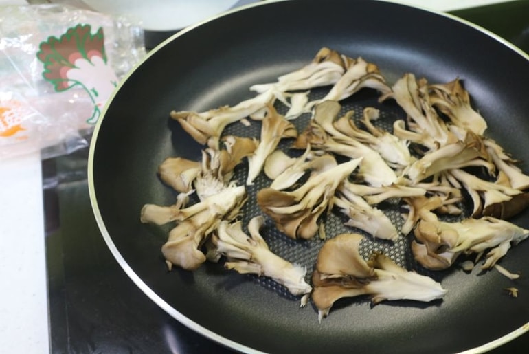 步驟2.乾鍋小火, 無油直接先煸香舞菇