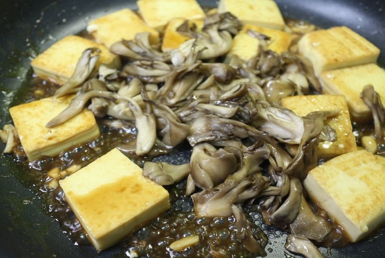 步驟6.煮到雞蛋豆腐入味後,再把剛剛煸香的舞菇加進來炒