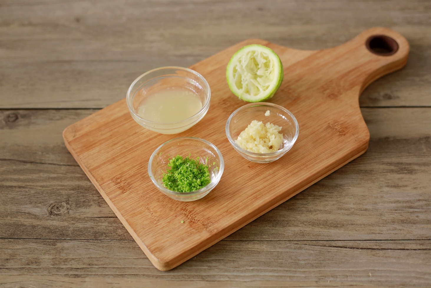蒜頭切末、一整顆檸檬先磨皮取檸檬皮屑後再擠汁。