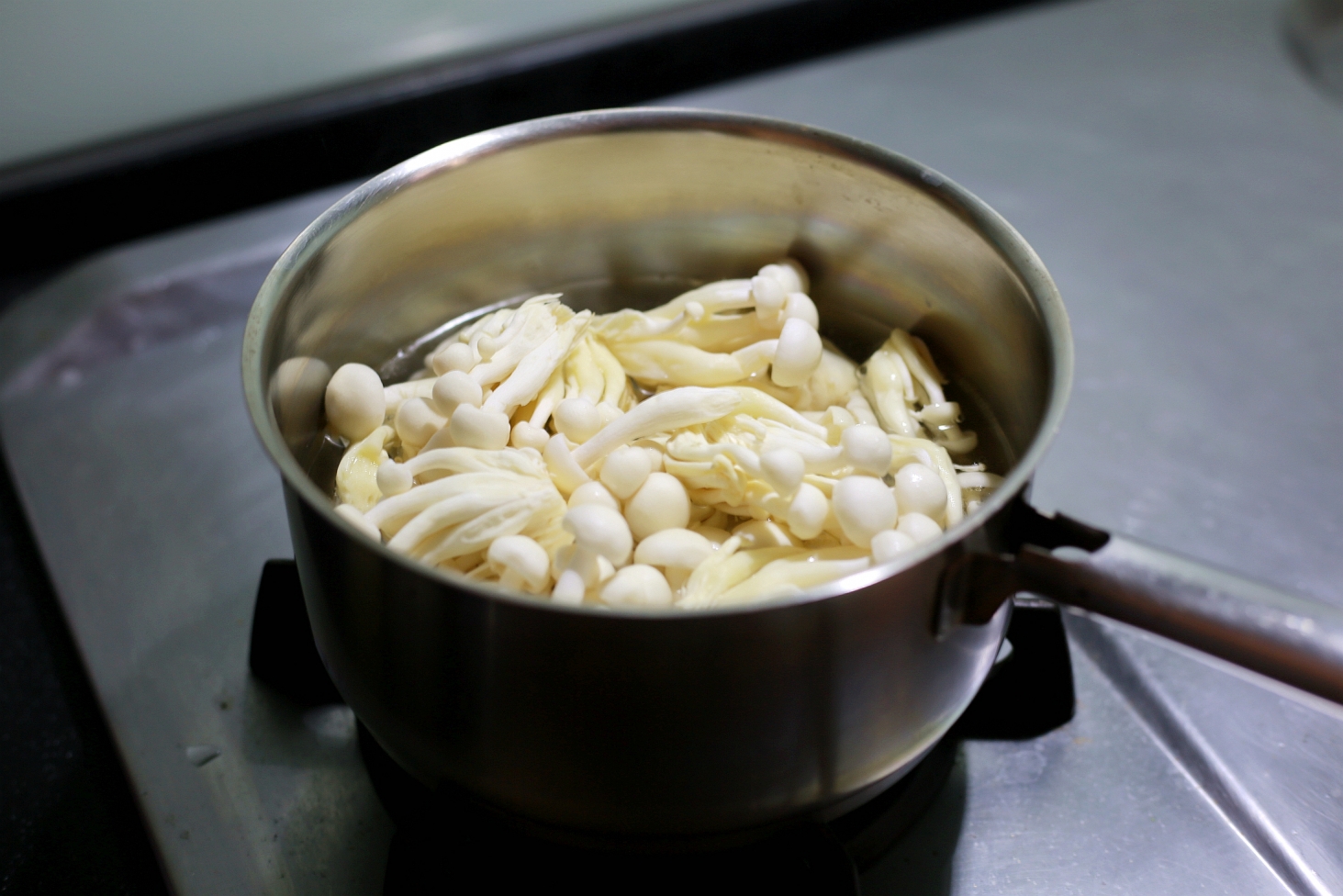煮一小鍋滾水,放入雪白菇汆燙2分鐘。