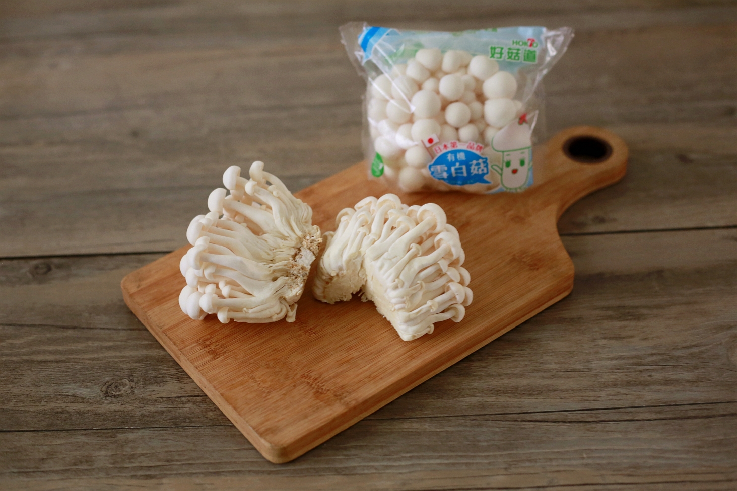 接著用手將雪白菇大塊剝開就可以輕鬆料理。