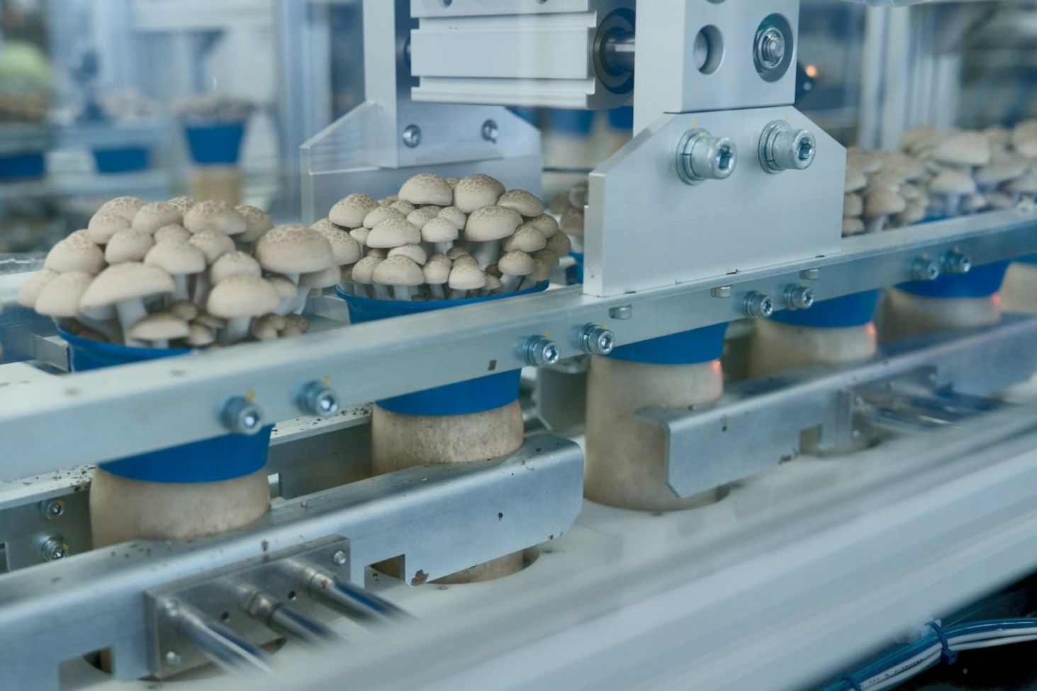 第二亮點則在於《好菇道》背後擁有規模化且專業的生產中心支撐運作,從源頭到細節都展現高度研發實力。以常見的雪白菇為例,就是透過長時間雜交與選育,培育出如玉般潔白、品質穩定的品種,同時在技術上建立專利優勢。在鴻喜菇部分,也在研究人員的努力下,透過「選擇性育種」技術,將不同的真菌進行雜交以創造新品種,以大幅降低鴻喜菇的苦澀感,口感上更加鮮美爽口。再加上第三大亮點《好菇道》獨家的自動瓶裝栽培系統,讓菇菇們從重量、形狀及品質都一致穩定。