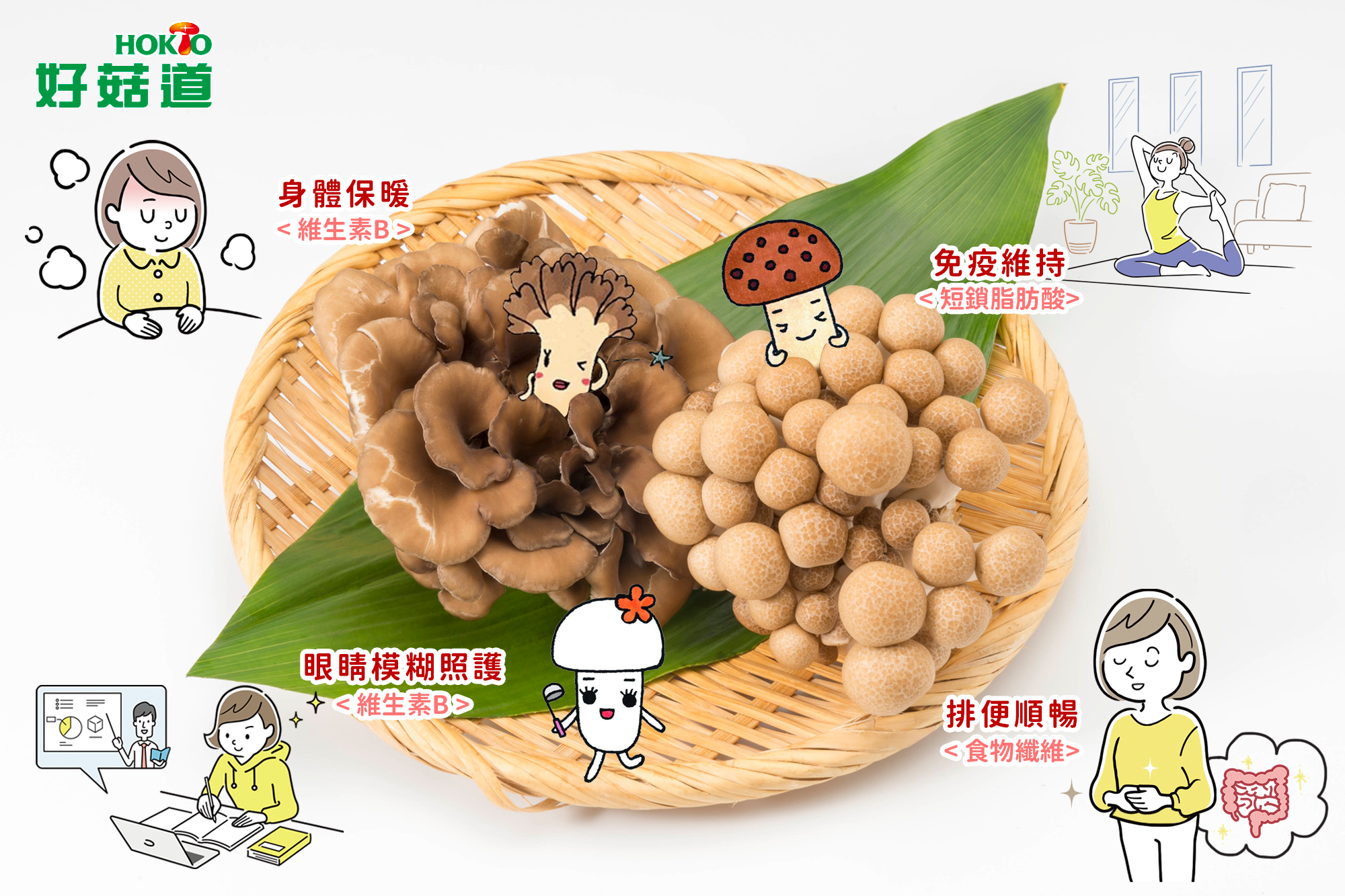 在食材上的選擇上,當然得推薦擁有豐富營養成分的菇菇啦!除了擁有豐富的維生素B之外,也富含膳食纖維,全身大約有70%的免疫細胞集中在腸道,因此,照顧好腸道健康就等於和提升免疫力畫上等號。據說吃菇菇可以增加腸內的「短鏈脂肪酸」含量,有助於維持免疫力,在容易感冒和流感盛行的季節裡,吃菇菇就能如虎添翼、身體健康啦!